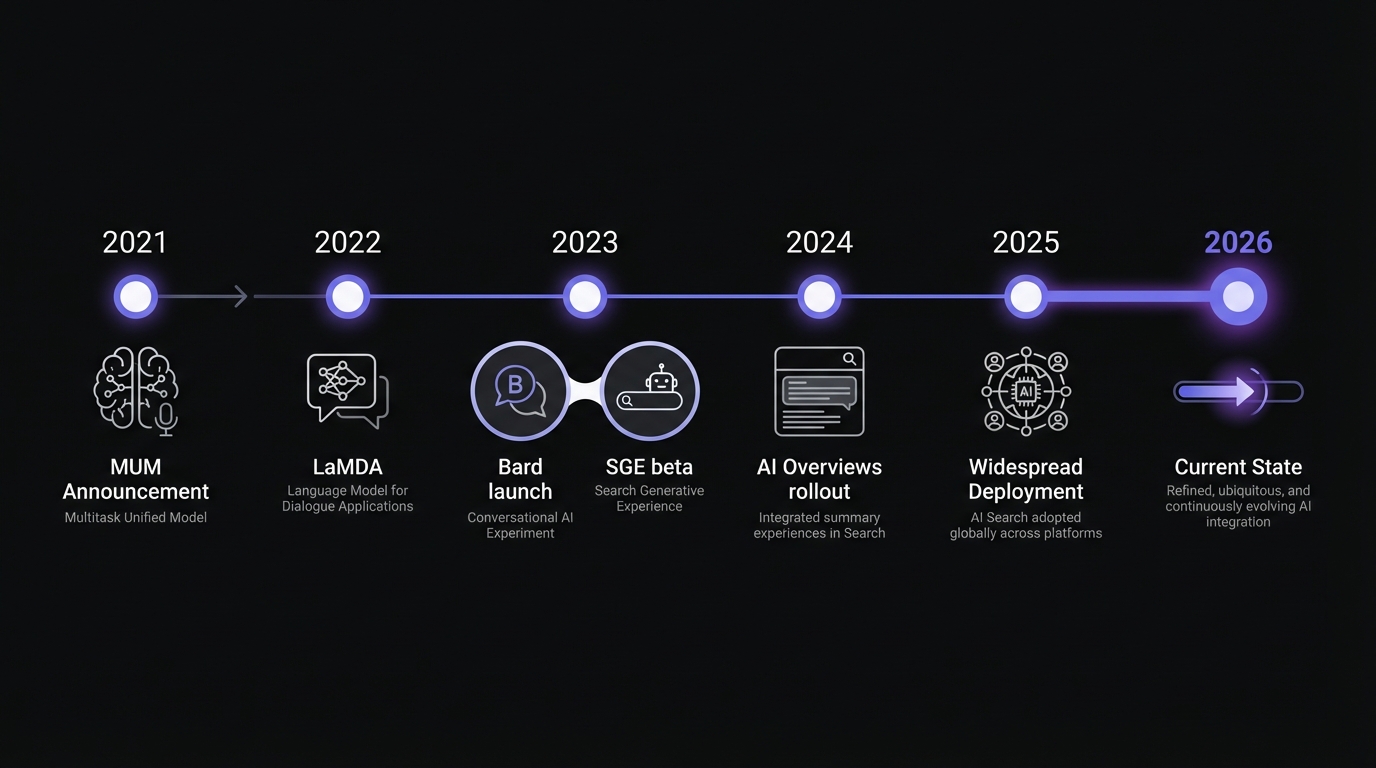 Understanding Google's journey to AI Overviews helps contextualize the current state and predict future developments. 2021: MUM (Multitask Unified Model) Announcement
