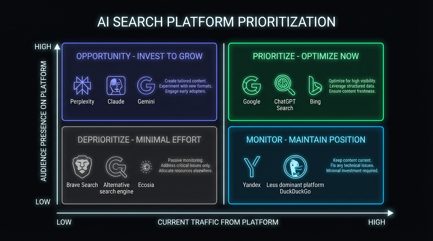 Strategic Implication: Google remains the priority for most businesses but diversification across AI search platforms may become increasingly important, especially as younger users adopt alternative search tools.