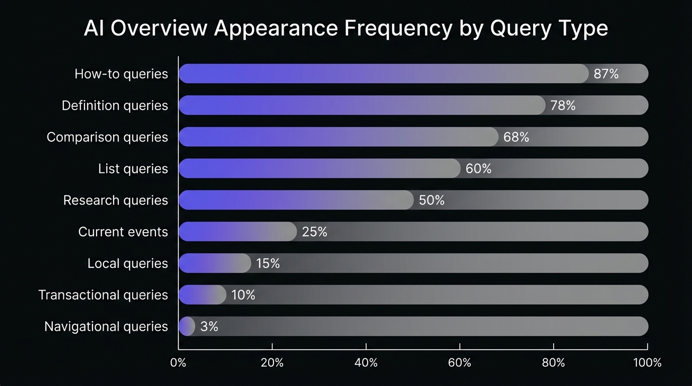 - Q1 2025: AI Overviews available for majority of informational queries