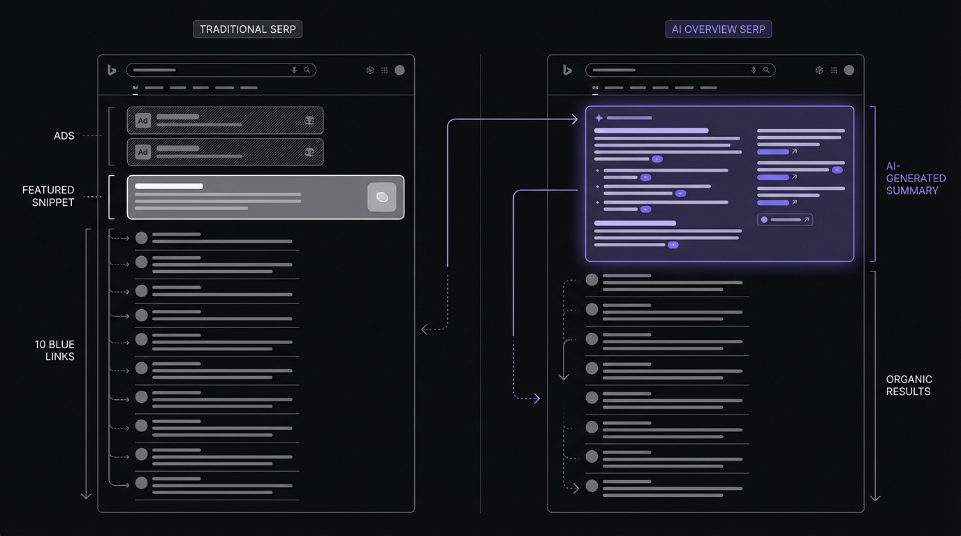 - Google Search: ~91% global market share, AI Overviews on 40-60% of queries